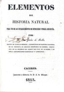 Su obra más significativa, Elementos de Historia Natural para uso de los establecimientos de instrucción pública de España (Cáceres, 1843), constituye un hito en la historia de la didáctica científica española por ser el primer manual original en castellano específicamente concebido para la enseñanza secundaria, rompiendo con la secular dependencia de adaptaciones y traducciones de textos franceses o latinos que había caracterizado la educación científica en España. Esta innovación pedagógica se inscribe en el contexto más amplio de las reformas educativas liberales, particularmente el Plan Pidal de 1845, que institucionalizó la enseñanza de las ciencias naturales en los institutos de segunda enseñanza y responsabilizó al Estado de la función docente.