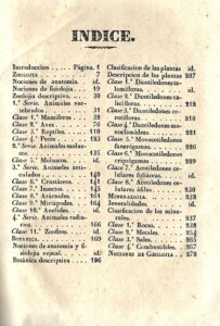 Hasta bien entrado el siglo XIX, la enseñanza de la historia natural en España estuvo marcada por una concepción enciclopédica, heredera de la tradición ilustrada y de la influencia francesa. Los manuales utilizados en colegios y universidades eran, en su mayoría, traducciones o adaptaciones de obras extranjeras, especialmente francesas, que priorizaban la descripción sistemática y la clasificación según los modelos de Buffon, Linneo y Cuvier. Ejemplo de ello es la proliferación de textos que reproducían la estructura tripartita (animal, vegetal, mineral) y la nomenclatura internacional, con escasa adaptación al contexto ibérico[7].