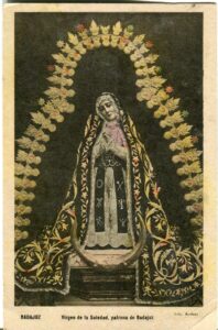 El 25, día de la Encarnación, terminaron dignamente los piadosos ejercicios de cuaresma, que el Rev. P. Heredero, de la Congregación del Inmaculado Corazón de María, ha dirigido en la S. I. C. de esta Ciudad… En la tarde del mismo día tuvo lugar la procesión para trasladar desde la Catedral a su propia Capilla a la veneranda imagen de Nª Sª de la Soledad. A quien se habían consagrado los piadosos cultos, asistiendo a ella además del Ilmo. Prelado[16] el clero catedral, alumnos del Seminario y Hermandad de la Virgen, un número crecido de fieles. La Ciudad de Badajoz ha dado en estos días un público testimonio de su catolicismo, y como la sociedad actual está tan necesitada de estas manifestaciones del espíritu religioso, nosotros, constantes defensores de la fe católica y de los buenos ejemplos, nos complacemos en consignar estos hechos como merecido elogio al pueblo pacense. (EAB, 27 marzo 1884)
