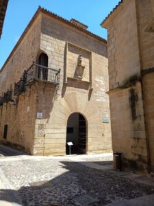 Con el intención de ampliarlas, llegado el caso, Diego de Carvajal “el Viejo”, el 28 de marzo de 1528, solicitó de don Juan López de Miranda, obispo de Castoria, administrador del obispado de Coria, en ausencia de don Ínigo López de Mendoza y Zúñiga, licencia para comprar por 310 maravedís y dos gallinas los 260 y las gallinas que la capellanía de Marina Jiménez, mujer de Gonzalo González, cuyo capellán era el vicario Hernán Galíndez, poseía sobre las casas de Francisco de León, en la calle de la Rúa, linde las de Juan de la Peña, las que fueron de Gonzalo de Cáceres y por las espaldas casas y solares de Diego de Carvajal. Argumentaba que Francisco de León era mal pagador, que debía siete u ocho años de renta y que los capellanes se veían compelidos a frecuentes reclamaciones judiciales. Esta transacción, tan desventajosa para Carvajal, solo es entendible bajo el objetivo de una futura anexión. El 18 de agosto de 1530, el cura Juan Galíndez, en su parroquia de San Mateo, falló a favor ante el notario Gaspar Hernández[39].