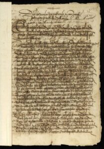 La pretensión del concejo de Trujillo[15] tendente a asegurar el control y poblamiento de estas tierras acuerda el 18 de marzo de 1418 el deslindamiento y amojonamiento del ejido de Navalvillar para aumentar su población[16], dicha carta de deslindamiento fue escrita en pergamino y signada por el escribano Blasco Domínguez: “…si al lugar de Navalvillar, que es en termino de Trujillo, fuese dado término para que viviesen los que agora en el moran, que se vendrian a bivir a el de mas de los que agora en el moran, otros muchos asi de tierra de Toledo como de otras partes por que la Tierra de Trujillo fuese mejor poblada ellos acordaron de dar termino a el dicho Lugar…”[17]. Los ejidos eran terrenos propios de las aldeas en los que no se podía realizar labor salvo con licencia del concejo, de aprovechamiento común. Los ejidos estaban a disposición de los vecinos de la localidad, eran tierras comunales y libres para pastos y también para viñas, huertas, molinos, etc., por eso estaban cercanos al núcleo de población. Los ejidos de las aldeas solían ser de un tiro de ballesta a su alrededor.