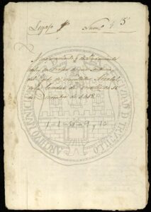 Lámina 1 y 2. Portada y primer folio del Legajo de Amojonamiento y deslindamiento del ejido de Navalvillar. Archivo Municipal de Trujillo.