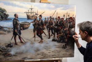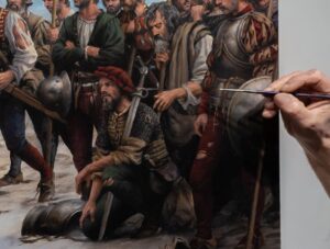 – La reciente creación de Ferrer- Dalmau,“ La línea de la Gloria” considerado el pintor de Historia militar más destacado del siglo XXI, una visión completamente ortodoxa que retoma la idea del Pizarro descubridor. Se finalizó en Mayo de 2025 para un coleccionista particular.
