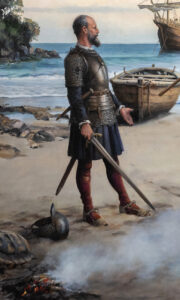De ciento doce, “trece almas firmes cruzaron el umbral del miedo y la duda. Trece nombres inscritos en el bronce del tiempo, los que se alzaron junto a Francisco Pizarro cuando la empresa parecía desmoronarse, cuando la gloria aún no tenía rostro y el fracaso parecía más seguro que la vida”- ha narrado Manuel Fuentes[18]. Fueron los elegidos de la Historia, los que dijeron sí al abismo y no al olvido. Los Trece de la Fama: Bartolomé Ruiz, Cristóbal de Peralta, Pedro de Candía, Domingo de Soraluce, Nicolás de Ribera, Francisco de Cuéllar, Alonso de Molina, Pedro Halcón, García de Jaén, Antón de Carrión, Alonso Briceño, Martín de Paz y Juan de la Torre.