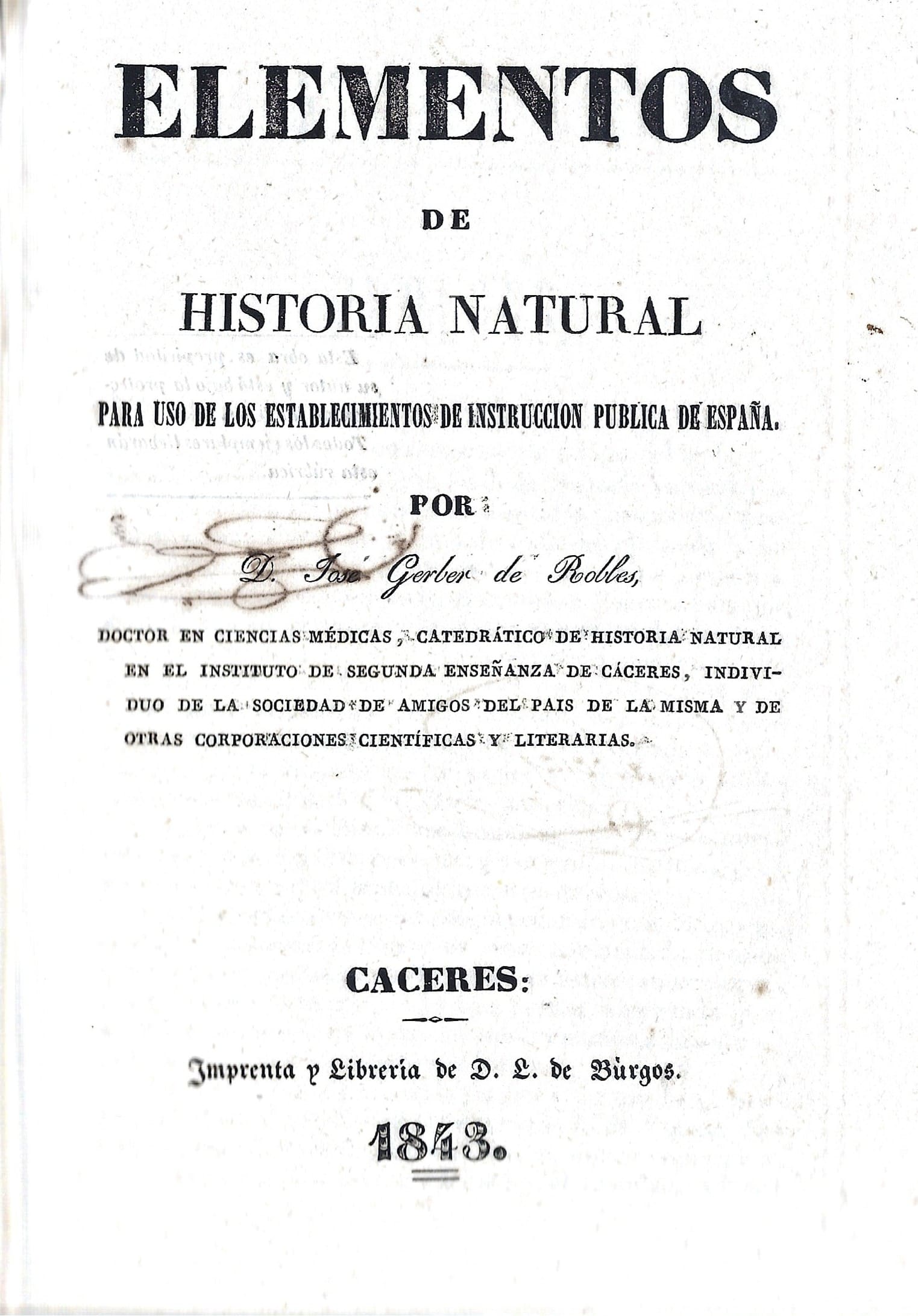 Rubén Núñez Quesada Esta comunicación recupera la figura y la obra de José Gerber de Robles (†1845), médico, catedrático y pionero de la enseñanza científica en la España del siglo XIX. Desde el Instituto de Segunda Enseñanza de Cáceres, Gerber de Robles publicó el primer manual de historia natural concebido…