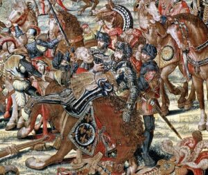 Imagen 9. Detalle del tapiz de Bernard van Orley en el que se observa la captura del rey de Francia Francisco I por los españoles. Museo del Real Bosco Capodimonte. Nápoles